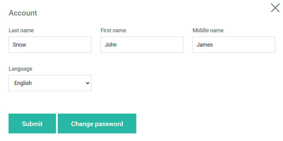 * To change your password, click the **Change password** button. Fill in a password changing form that opens.